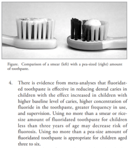 – Grain size of kid’s age-appropriate fluoridated toothpaste if the child is below the age of 3 years.